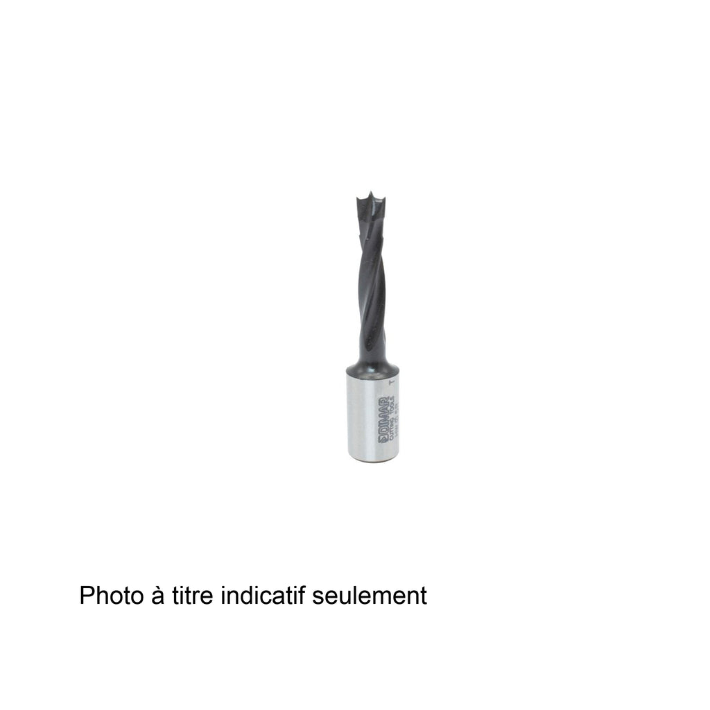 Le foret à chevilles à pointe Brad Point en carbure de Dimar avec 2 cannelures et la pointe centrale est idéal pour percer des trous sans déchirure dans le bois massif ou les matériaux de panneaux stratifiés en plastique/placage. Queues cylindriques standard de 10 mm de diamètre avec méplat de fixation pour vis sans tête et vis de réglage de longueur.