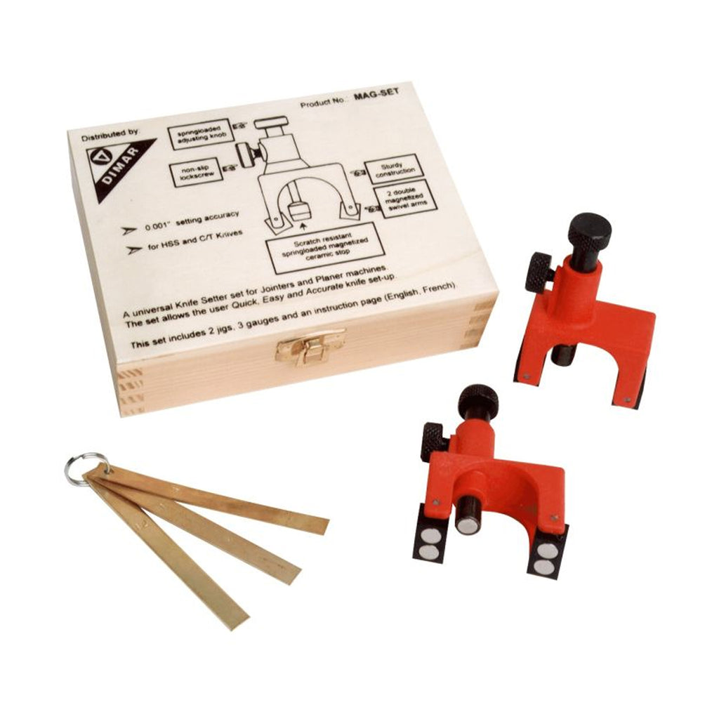 Les poseurs de couteaux universels de Dimar sont parfaits pour une utilisation sur les dégauchisseuses et les raboteuses. Cet ensemble permet à l'utilisateur une configuration rapide, facile et précise des couteaux.