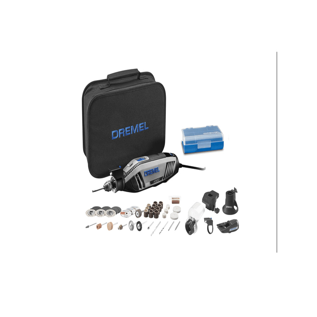 Des possibilités infinies, un seul outil. Du ponçage au meulage, et du défonçage à la coupe; le Dremel 4300 produit de la puissance d'un travail à l'autre. Le 4300 est le premier outil rotatif Dremel à permettre le changement d'accessoires sans outil et sans prince grâce à l'inclusion d'un mandrin sans clé. Le mandrin accepte toutes les tailles de tige d'accessoires Dremel pour des changements d'accessoires rapides et pratiques sans jamais utiliser de clé. Avec la toute nouvelle lampe pivotante, vos projets sont bien éclairés avec une ligne de vue optimale puisque la lampe pivote pour diriger l'éclairage là où vous le souhaitez. L'expérience de la gamme complète des applications des outils rotatifs Dremel est plus facile que jamais car le 4300 offre notre moteur le plus puissant avec une vitesse variable intégrée et un circuit de rétroaction électronique. La conception mince et ergonomique du corps offre une zone de prise confortable à 360 degrés, quelle que soit la façon dont vous le tenez, pour une facilité d'utilisation accrue. Le système de circulation d'air entièrement repensé permet au Dremel 4300 de fonctionner de manière fraîche, silencieuse et fluide, de sorte que la réalisation de projets s'opère dans les meilleures conditions possibles. Le Dremel 4300 est parfait pour affûter les outils de jardin, y compris les lames de tondeuses à gazon. Cet outil rotatif à vitesse variable est un graveur de bois, un graveur de métal, un graveur de verre, une ponceuse fine, un foret de ponçage et une micro-perceuse.