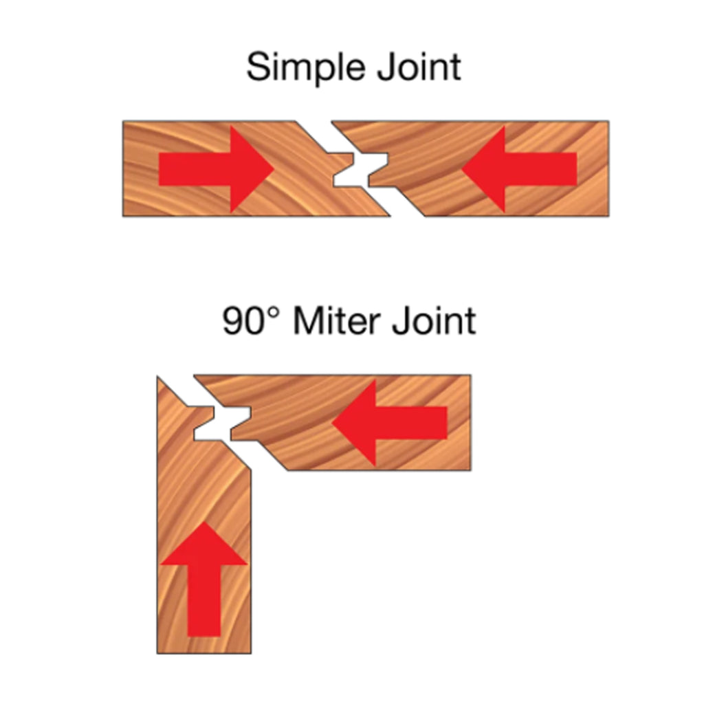 Ces mèches sont conçues pour fraiser une pièce horizontalement sur la table à toupie et l'autre pièce verticalement.