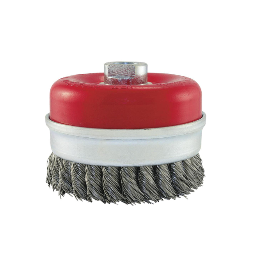 • La ceinture permet de limiter la rupture des fils causée par l'évasement de la brosse, en garantissant une sécurité et un rendement supplémentaires *En exclusivité, fils métalliques noués à haute densité de plus grand diamètre, compatibles avec les rectifieuses angulaires de 5 po à 6 po – Ce sont les brosses qui offrent le meilleur rendement utilisées dans l'industrie pour cette gamme de rectifieuses angulaires