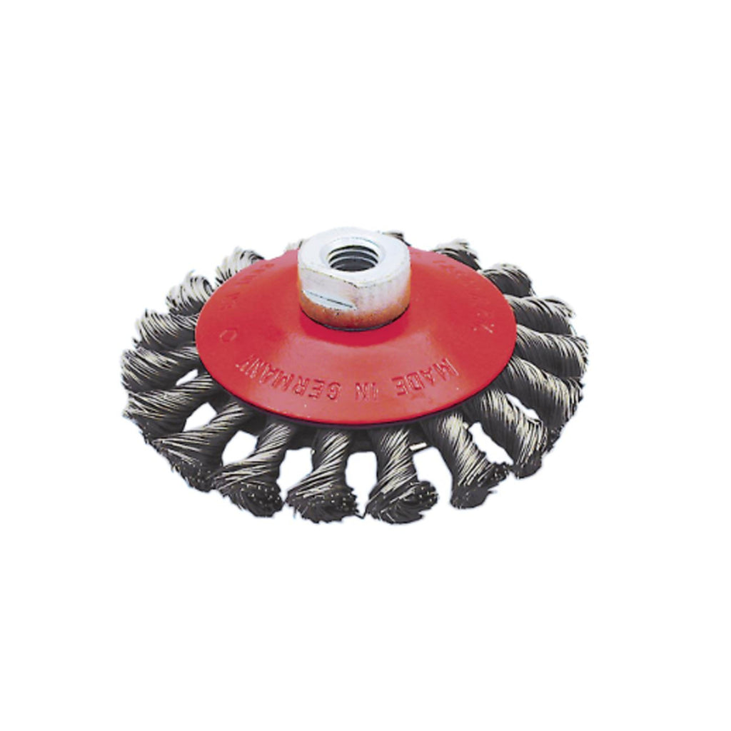• Les brosses coniques haute vitesse à fils métalliques noués sont idéales pour le nettoyage en profondeur des projections de soudures, des scories, de la rouille, de la peinture et de la calamine dans les endroits difficiles d'accès
