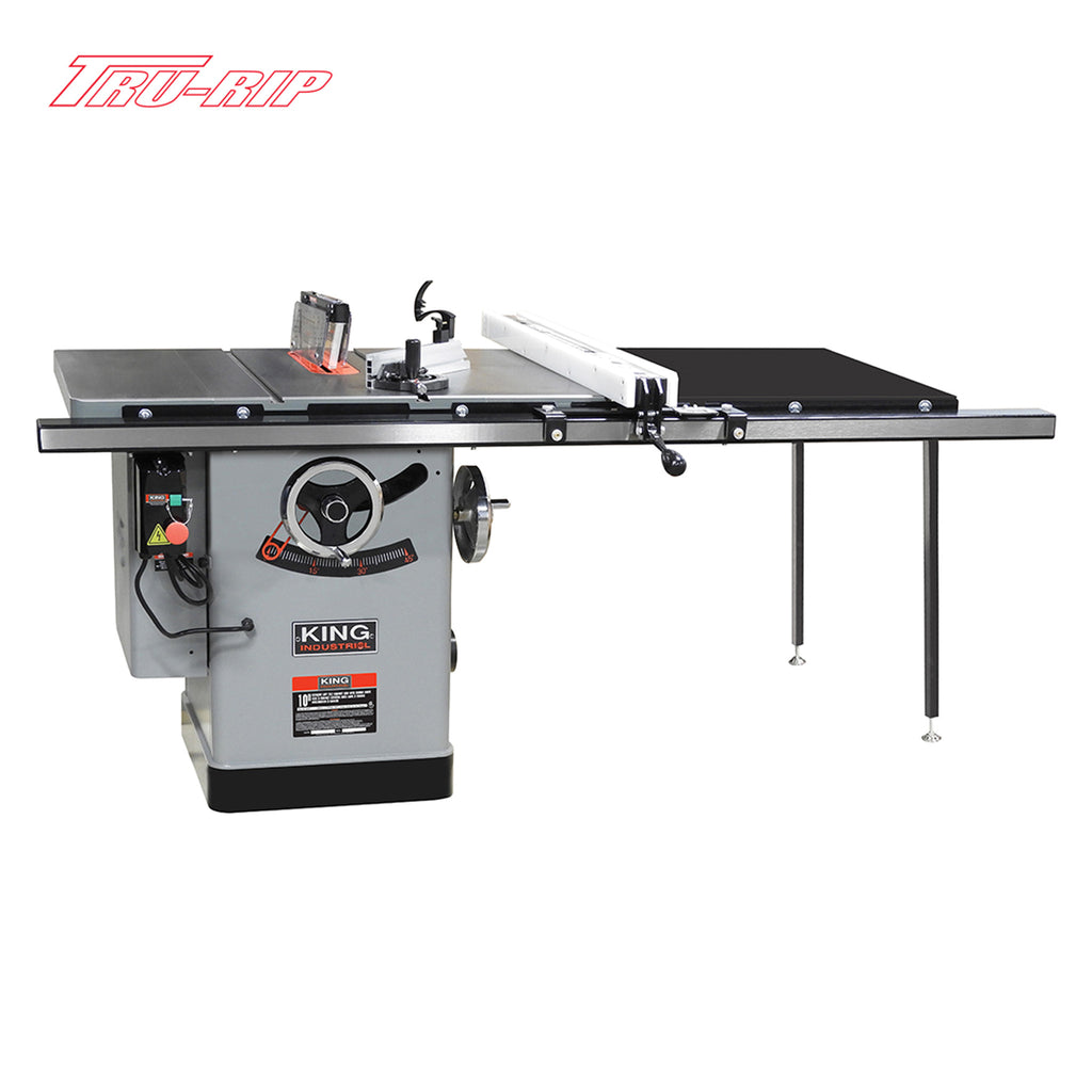 Comprend une lame à fendre, un système de guide à refendre industriel T-square ''Tru-Rip'', table d’extension en mélamine contre-plaqué, 2 supports ajustables pour table d’extension, guide à onglets en fonte d’acier avec guide en aluminium et appui pivotant, insertions standard et dado