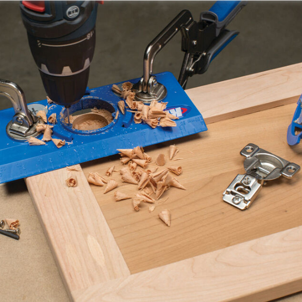 Obtenez la précision d'un perceuse à colonne avec une perceuse à main en utilisant le gabarit de charnière d'armoire! Une façon simple, précise et uniforme d'installer des charnières de portes d'armoire. Ajustez facilement le gabarit afin de positionner le boîtier de la charnière avec précision, puis percez un trou d'une profondeur idéale à l'aide de n'importe quelle perceuse. Installez des charnières en toute confiance: elles s'adapteront chaque fois parfaitement et vous obtiendrez ainsi de belles portes qui s'ajustent à merveille. Permet de réaliser des portes qui s'ajustent et fonctionnent à la perfection. Permet d'obtenir des résultats fiables et uniformes. Garantit chaque fois un positionnement précis. Élimine le travail fait l'aveuglette.