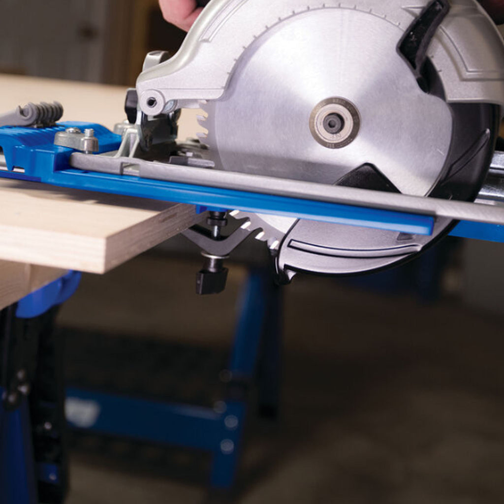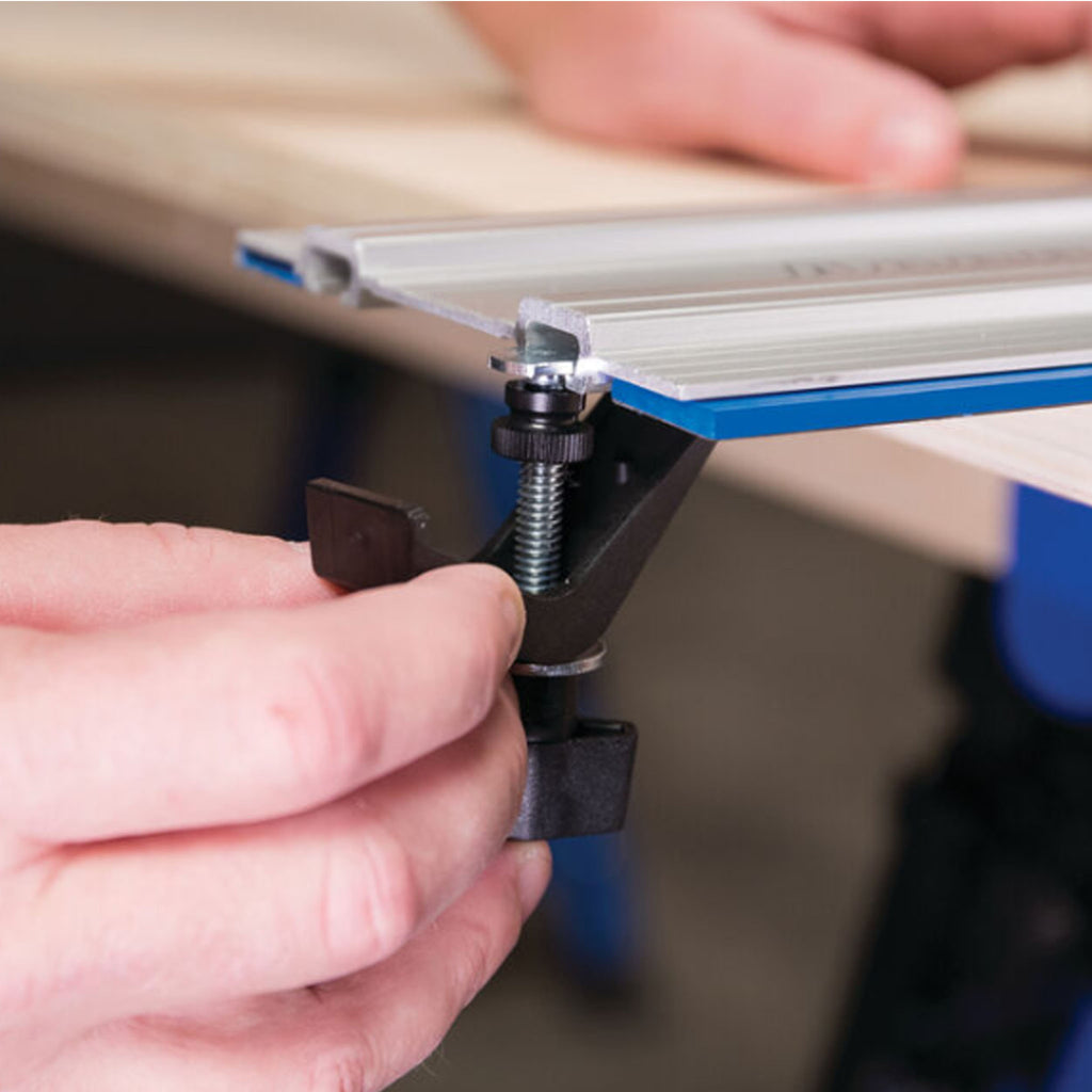Les pinces peuvent être utilisées avec la piste de guidage du système de coupe adaptatif en les faisant glisser sur la face inférieure de la voie où une puissance de maintien supplémentaire peut être nécessaire. Les pinces de chenilles sont également compatibles avec d’autres produits Kreg tels que Clamp Trak™, Universal Clamp Trak™ Kits et Mini Trak™. En outre, les pinces de chenilles sont pratiques pour créer des gabarits et des luminaires construits en atelier.