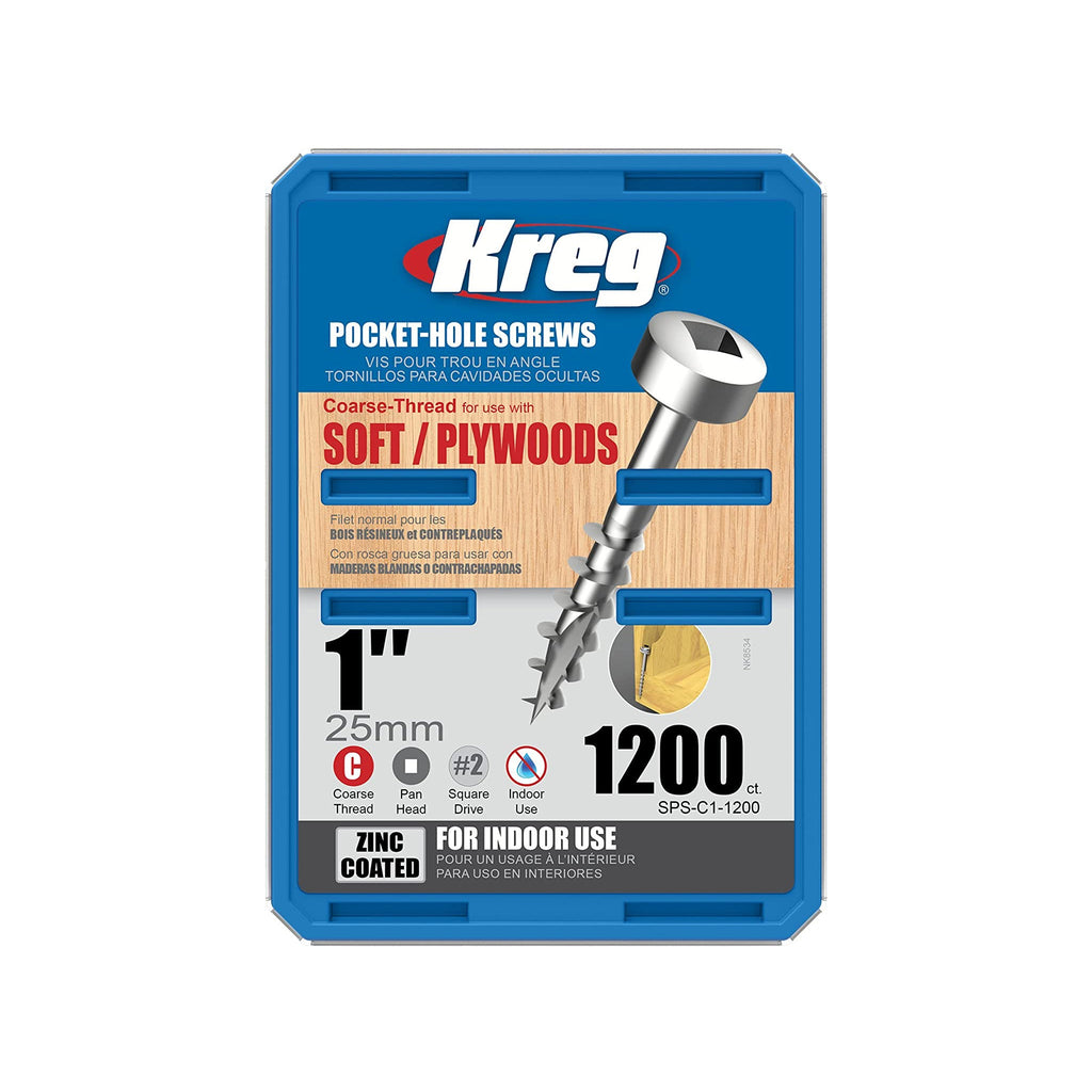 Vis no 7 - 1'' long régulier ( bois mou) 100x - KREG - SPS-C1-100 Le filetage grossier 1 » srew est la vis recommandée pour l’assemblage des boîtes à tiroirs en contreplaqué 1/2 ».