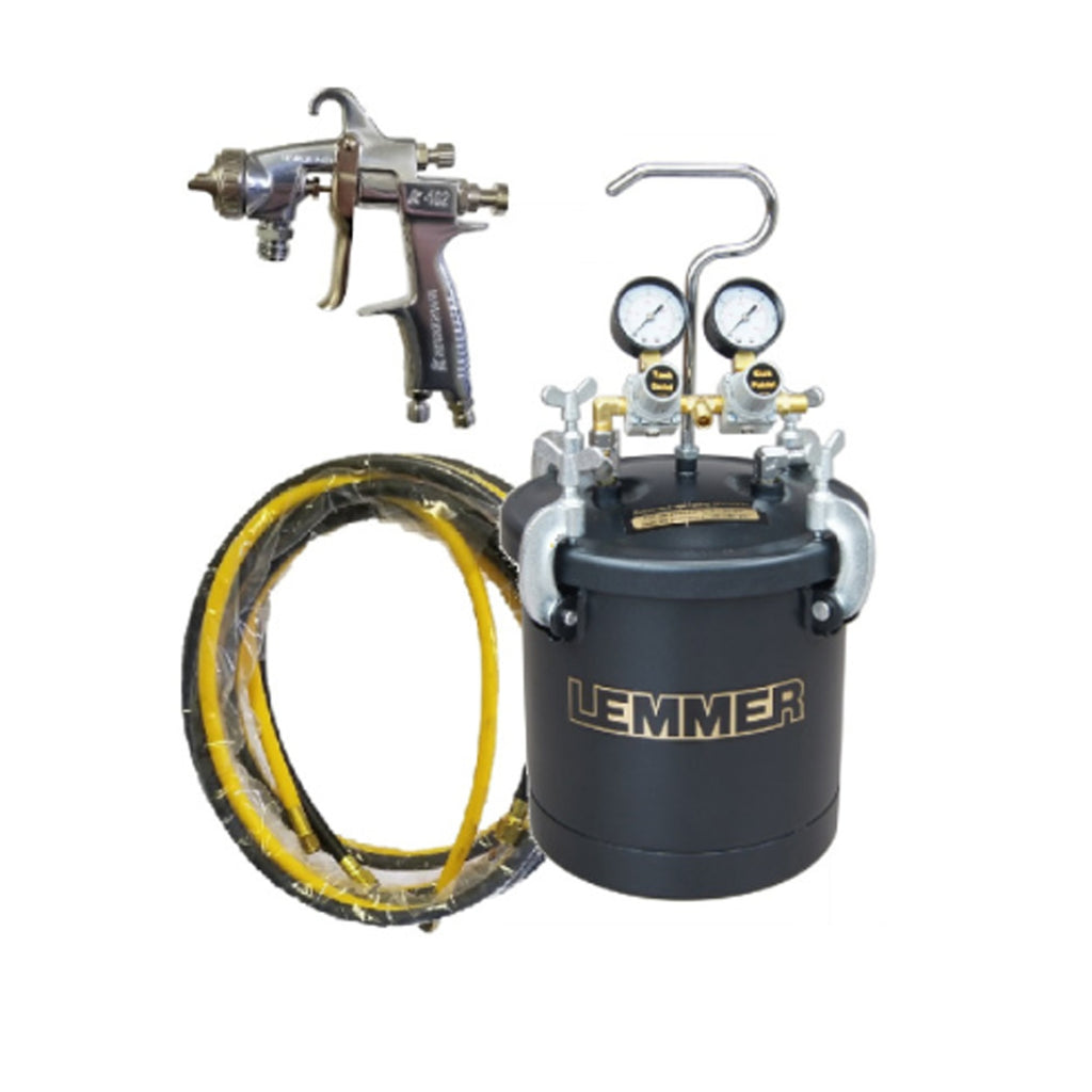 Le réservoir pressurisé à peinture est conçu pour durer grâce a une robuste construction commercial tout en acier épais. Il comprend des régulateurs de haute qualité avec des jauges en verre, une doublure intérieure remplaçable et une tige de suction en acier inoxydable. Cette ensemble complet comprend un pot pressurisé de 2,25 gallons, un ensemble de boyau ultra flexible doubles de 25 pieds et un pistolet de pulvérisation professionnel A-580. Le pistolet pulvérisateur de peinture A-580S est plus facile à manipuler pour une petite main et est conçu pour la finition de meubles, la pulvérisation d'armoires, les boîtiers et les garde-corps, les ateliers de fabrication de métaux ou les entrepreneurs effectuant des travaux généraux de finition soignée.