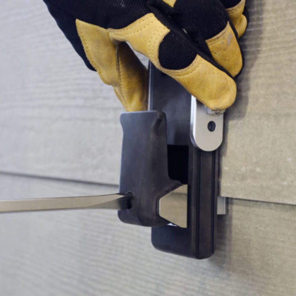 La plage de serrage 5/16″ - 5/8″ permet à l'utilisateur d'utiliser une seule jauge pour suspendre la plupart des bardages à clin. Le design ne marque pas et est conçu pour être utilisé avec des matériaux apprêtés.