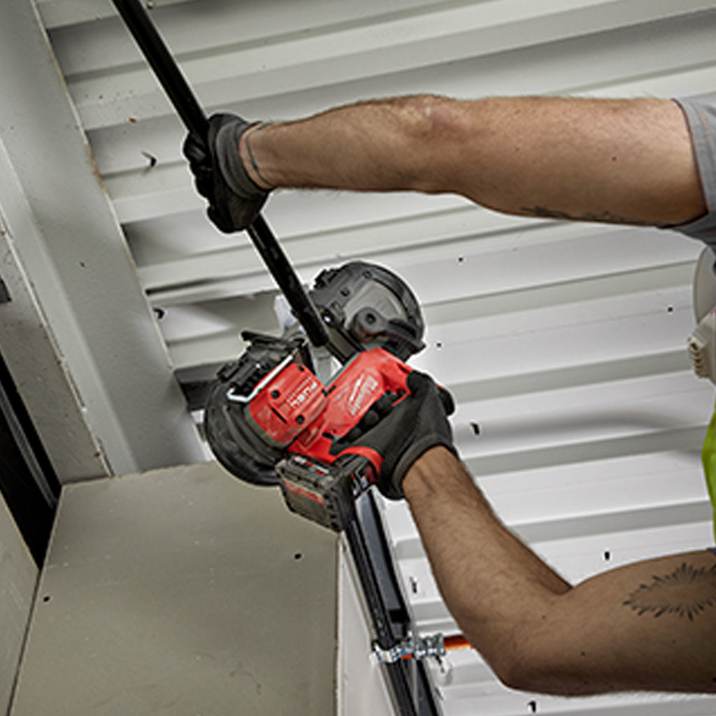 La scie à ruban compacte M12 FUEL™ utilise notre moteur sans balais POWERSTATE™ et Constant Power Technology™, ce qui en fait la scie à ruban compacte de coupe la plus rapide d'Unistrut avec une capacité de coupe de 2-1/2'' X 2-1/2''. La scie à ruban compacte M12 FUEL™ offre une conception compacte et ne pèse que six livres, ce qui en fait la scie à ruban compacte la plus légère du marché. La scie à ruban compacte M12 FUEL™ offre des couvre-lames intégrés, ce qui la rend adaptée à une utilisation à une main tout en offrant une plus grande capacité que la scie à ruban sous-compacte M12™ existante. Les performances améliorées, la conception légère, la capacité d'une seule main et la capacité accrue améliorent votre productivité tout en réduisant la fatigue. La scie à ruban compacte et portable est équipée de la Jobsite Armor Technology™, un matériau composite exclusif pour mieux la protéger des chutes et des débris et des barrières de zone d'écrasement qui absorbent les impacts. Une gâchette à vitesse variable et une lampe de travail à LED offrent un contrôle maximal. Un crochet de chevron intégré permet un rangement facile entre les coupes. La scie à ruban compacte MILWAUKEE® M12 FUEL™ est également compatible avec l'alésoir pour scie à ruban (49-90-2029, vendu séparément), qui se fixe facilement à l'arrière de l'outil, vous offrant la possibilité de couper et d'aléser avec le même outil. Une lame métallique extrême 12/14 TPI est incluse.