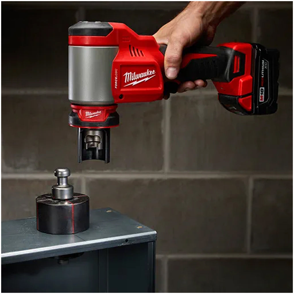 Le kit d'outils de débourrage M18 ™ FORCE LOGIC ™ 10 tonnes 1/2 ''-2'' réduit les étapes fastidieuses de la réalisation de trous, améliorant votre vitesse et limitant votre fatigue. Cet outil de perforation est assez puissant pour percer des trous jusqu'à 6 po dans de l'acier doux de calibre 12 et de l'acier inoxydable de calibre 14. Notre système d'alignement Quick Connect vous permet une configuration facile sans le poids de l'outil et accélère le poinçonnage répétitif. L'outil est compatible avec tous nos poinçons et matrices MILWAUKEE® EXACT ™. Les matrices à découper sont conçues pour le poinçonnage en acier doux et en acier inoxydable. Les réticules rouges vifs vous offrent un alignement précis et les ports d'élimination des limaces permettent une élimination optimale des limaces. La surface de préhension des poinçons EXACT ™ vous permet d'enfiler plus rapidement. L'outil knockout sans fil de 10 tonnes offre le moyen le plus simple de poinçonner.