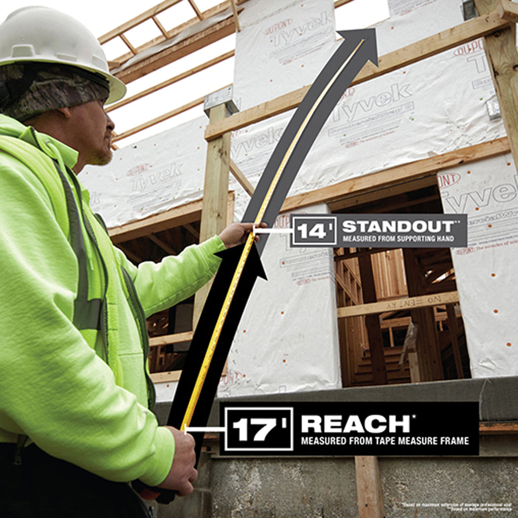 Le ruban à mesurer STUD ™ de 8 m / 26 pieds est le ruban à mesurer le plus durable de l'industrie, équipé de la technologie innovante de lame EXO360 ™. L'EXO360 ™ protège la lame de votre ruban de la déchirure et de l'usure, offrant la lame la plus durable du marché. Le ruban offre une portée de 17 pi * vous permettant de prendre de longues mesures par vous-même et d'aller plus loin sur le chantier. La technologie de pointe de la lame de ruban à mesurer, combinée à un cadre résistant aux chocs entièrement renforcé, fait du STUD ™ Tape Measures le ruban à mesurer rétractable le plus durable pour tous vos besoins sur le chantier. Les rubans à mesurer STUD ™ sont également dotés d'une impression recto-verso pour une lecture facile ainsi que d'un arrêt pour les doigts pour contrôler la rétraction de la lame.