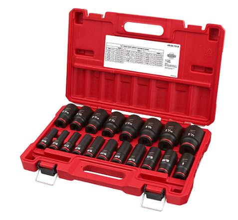 Les jeux de douilles à 6 points SHOCKWAVE Impact Duty™ 1/2'' Drive présentent les marquages les plus audacieux et les plus durables et une durabilité extrême aux chocs dans les applications à couple élevé. Le marquage de taille estampé et rempli d'encre vous permet de sélectionner la bonne douille à chaque fois tout au long de la durée de vie de la douille.Ces douilles sont conçues avec de l'acier forgé à haute résistance pour des performances optimisées dans les applications lourdes.La géométrie hexagonale antidérapante empêche l'arrondi de la fixation, et une conception à double trou et une rainure annulaire permettent une fixation et un retrait faciles de la douille. Les étuis de rangement sont résistants aux chocs et s'emboîtent pour faciliter l'empilage et le stockage.Toutes les douilles MILWAUKEE® SHOCKWAVE Impact Duty™ bénéficient d'une garantie à vie et sont conformes aux normes de l'industrie ASME.