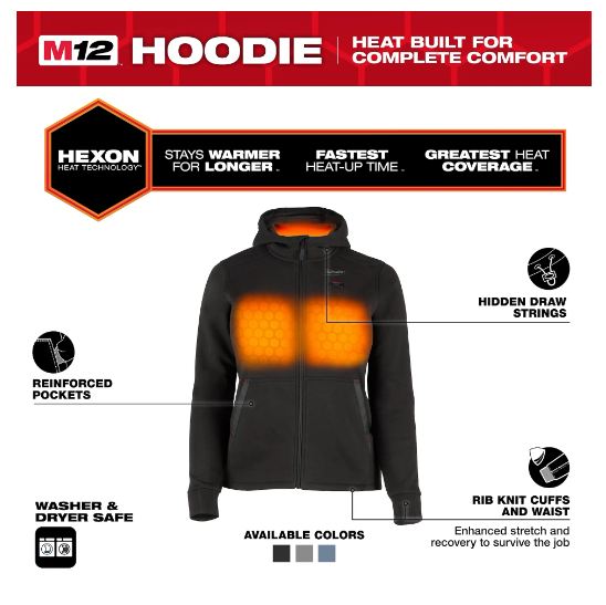 Le sweat à capuche chauffant M12™ offre une chaleur optimale pour un confort optimal. Doté de la nouvelle technologie HEXON HEAT™ de Milwaukee, ce sweat à capuche reste chaud plus longtemps, quelle que soit la température, offre un temps de chauffe ultra-rapide et une protection thermique optimale. Que vous soyez confronté à des températures extérieures glaciales ou que vous évoluiez dans des espaces intérieurs peu chauffés, ce sweat à capuche s'adapte à son environnement pour vous offrir une chaleur efficace en toutes circonstances. Grâce à la technologie HEXON HEAT™ et à une conception de tissu améliorée, vous bénéficiez d'un confort et d'une mobilité optimaux. Fabriqué en molleton de coton/polyester entièrement développé, ce sweat à capuche MILWAUKEE® offre chaleur et liberté de mouvement, qu'il soit porté en couche intermédiaire ou extérieure. La poche passe-batterie dissimulée permet de placer la batterie à l'avant ou à l'arrière, pour une polyvalence accrue selon la situation. Nos vêtements chauffants Milwaukee® sont développés en collaboration avec des utilisateurs de tous les corps de métier, grâce à des recherches continues sur les chantiers.