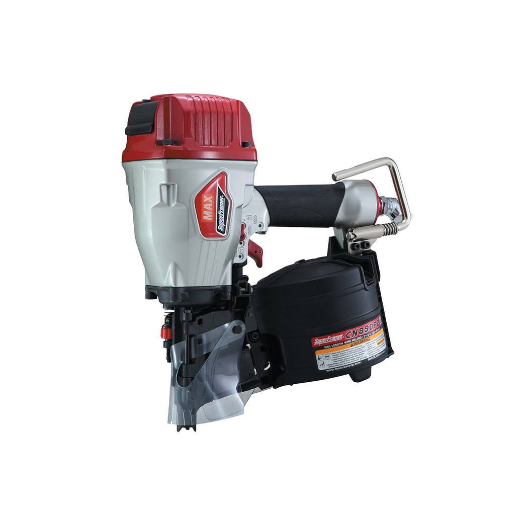 Parmi les cloueuses à bobines les plus sûres, légères et compactes de sa catégorie, la SuperFramer® ne pèse que 3,5 kg (7,7 lb), ce qui prévient la fatigue des bras en utilisation continue. Sa gâchette anti-double tir minimise les blessures accidentelles lors d'un deuxième tir. La cloueuse pneumatique SuperFramer® enfonce des clous à bobines en bande de fil à 15 degrés de 5,1 cm (2 po) à 8,9 cm (3 1/2 po) de longueur, ce qui en fait un outil polyvalent et sûr pour les travaux de charpente, de revêtement, de terrasse, de sous-plancher, etc. MAX s'engage à fabriquer des outils fiables, conçus pour offrir des performances optimales tout en garantissant la sécurité des utilisateurs.