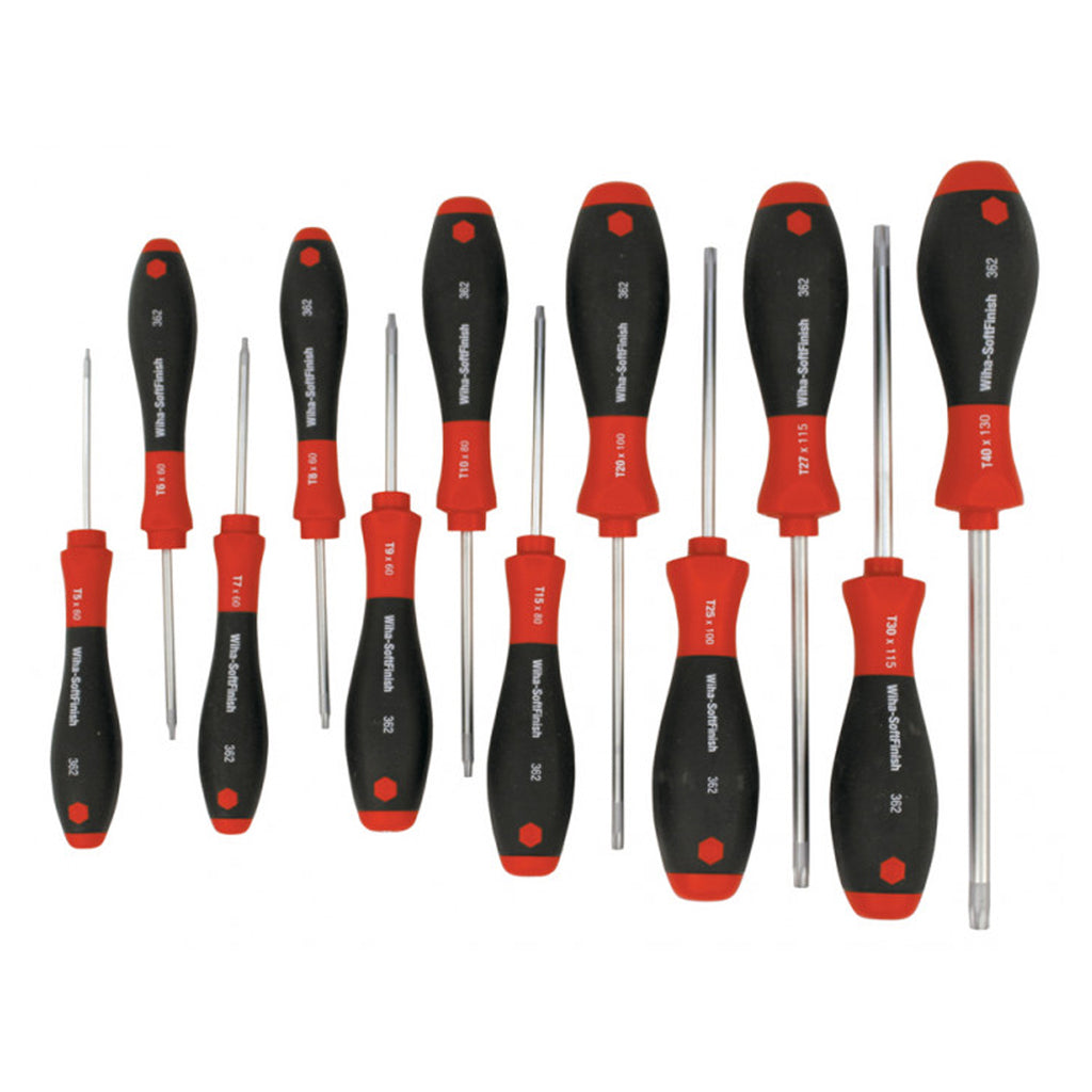 Jeu de 12 tournevis à poignée coussinée Torx® SoftFinish® T5, T6, T7, T8, T9, T10, T15, T20, T25, T27, T30, T40